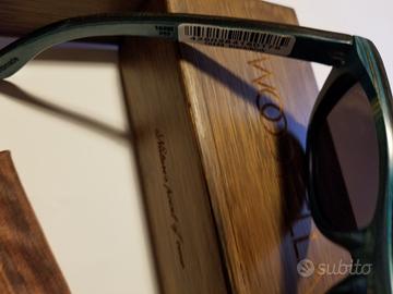 Occhiali nuovi con confezione , in legno azzurri, polarizzati , noto marchio .