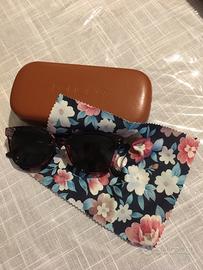 Vendo occhiali scuri con montatura floreale, marca Komono. Custodia rigida color marroncino e pezzetta a fiori (entrambe Komono)