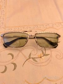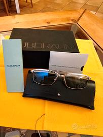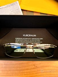 Vendo occhiali da sole usati pochissimo in metallo rettangolare doppio ponte KUBORAUM Mask H57 argento battuto a mano. Lenti verde acqua a contrasto.