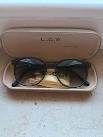 vendo occhiali L.G.R. Keren dimensione 54-18 con lenti da sole sfumate. Occhiali utilizzati poche volte e poi conservati nella custodia originale compresa di panno originale e nella scatola. Le condizioni sono eccellenti, non presentano graffi sulle lenti ne danneggiamenti della montatura. Vendo per inutilizzo