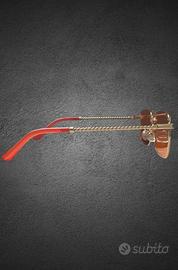 Occhiali da sole lente arancione aste dorate v