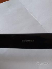 Vendo occhiali da sole vintage Lozza modello Bermuda, originali anni ’70, colore nero, len ti grigie, made in Italy. Montatura in acetato nero, lenti grigie, stile squadrato rétro unisex, acquistati all’epoca presso Ottica Arnaldo Chierichetti di Milano (scritta “Chierichetti” presente sull’asta). Dimensioni indicative: Larghezza frontale: circa 144 mm Larghezza lente: circa 53–54 mm Ponte: circa 20 mm Lunghezza aste: circa 140–145 mm Condizioni: usato, con segni del tempo. Le lenti in plastica originali presentano graffi e segni di usura sulle superfici, dovuti agli anni; sono perfette come testimonianza dell’epoca, ma per un uso quotidiano consiglierei la sostituzione presso un ottico. Montatura strutturalmente solida, nessuna rottura. Venduto senza custodia originale. Pezzo ideale per collezionisti di occhiali vintage italiani o per chi cerca un vero modello anni ’70 da personalizzare con lenti nuove.