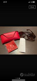 Occhiale da sole della maison di Valentino. Hanno un colore sfumato/maculato che va dal marrone al bordeaux. Nuovo completo di confezionare, pezzuola e libretti. Larghezza 14,5cm.