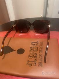 Sono occhiali da sole di Maxmara con montatura rettangolare di colore marrone,hanno lenti con il massimo della protezione dai raggi UV e una montatura originale ma nello stesso tempo classica,elegante sicuramente,sono occhiali vintage ma tenuti benissimo,sia la montatura sia le lenti sono perfette e con la loro custodia,sono come nuovi perché mai usati in quanto porto gli occhiali e mi sono stati regalati perché avrei dovuto portare le lenti ma non e’ accaduto per cui pur senza cartellino sono comunque nuovi e il prezzo quindi è ottimo!