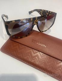 MISSONI Occhiali Da Sole Colore di montatura: Avana Fattore di Protezione Solare cat.3 vetro specchiato, forma rettangolare. Montatura: Acetato Lenti: Poliestere Dimensioni: calibro lenti - lunghezza 61mm, larghezza ponte del naso - 13mm, lunghezza stanghette 140mm. Vera spedita in completo - custodia con clip magnetico, protezione e pano dí polizia.