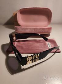 vendo occhiali da sole Miu Miu neri con logo oro e lente tendente al viola nuovissimi