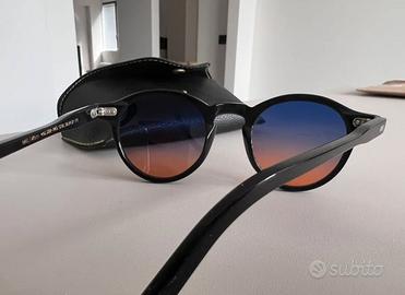 OCCHIALI DA SOLE MOSCOT MILTZEN SUN 46 CUSTOM. Occhiali da sole Moscot Modello Miltzen Sun Taglia 46 Lenti Custom metà arancioni e metà blu notte Montatura NERA Completo di pulisci occhiale moscot, confezione e codice di originalità Tutto originale