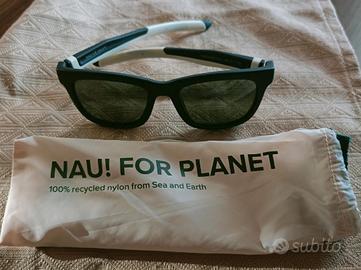 Occhiali da sole NAU , categoria di protezione n. 3, montatura innovativa, lenti colore verde scuro, leggeri e al tempo stesso molto resistenti. Nuovi con custodia e pannetto per la pulizia