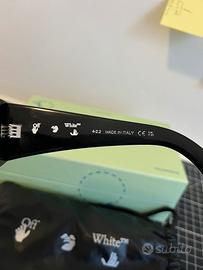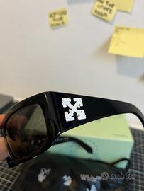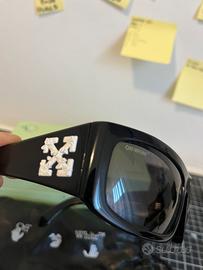 Vendo occhiali da sole OFF-WHITE neri, design iconico e streetwear, perfetti per chi cerca stile e qualità.