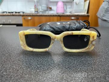 occhiali da sole Off White Acetate Arthur Square Sunglasses color beige. Mai indossati.