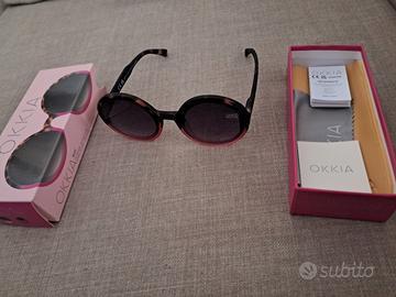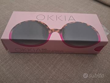 Nuovissimi occhiali da sole da donna OKKIA SUN OK014 nuove, mai utilizzate, scatola originale, colore Havana/Rosa - Lente Nera, perfette condizioni, comode, montatura soft touch
