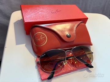 Occhiali con lenti nuove marroni sfumate. Leggermente rovinate le estremità delle astine per via del normale uso. Originali Ray Ban. Prezzo trattabile.