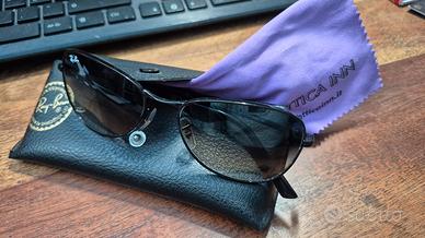 Bellissimi occhiali da sole della RayBan unisex perfetti senza graffi usati pochissimo per via che dopo l'acquisto ho dovuto mettere occhiali da vista e non più potuti utilizzare, montatura nera e lenti scure protezione uv veramente belli con custodia e panno per la pulizia, pagati oltre 150,00 euro, li svendo a solo 60,00 euro vero affare!!!