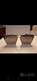 Vendo occhiali da sole oversize, montatura dorata e lenti dorate specchiate, molto stilose e particolari.. usate poche volte, come nuove senza scatolo d'appartenenza.