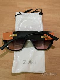 Occhiali da sole firmati Zuiki, modello oversize con montatura nera lucida e lenti sfumate. 🕶️