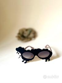 Gli occhiali sono caratterizzati da una montatura in plastica nera sagomata a forma di pecora, con una faccia bianca e zampe nere.