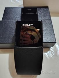 Occhiali da sole per donne Prada, modello PRY16S. Il materiale della montatura é acetato, color marrone. Il modello fa parte dell'ultima collezione Eyewear, spesso associata alla linea "Painted in Prada".
