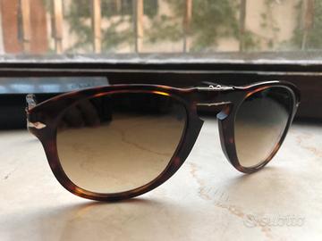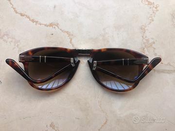 Occhiali da sole Persol, modello 714 folding originali. Grazie alla possibilità di essere piegato completamente come mostrato nella foto n 4, l'occhiale diventa tascabile.