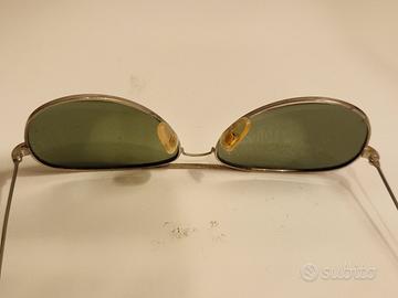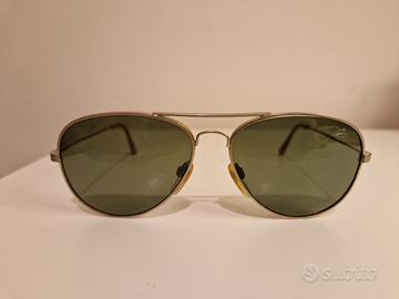 Occhiali da sole Polaroid tipo Pilot, lenti verdi polarizzate in buono stato, alcuni segni del tempo su montatura.