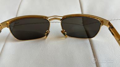 Occhiali da sole vintage POLICE credo Mod. 2183 Made in Italy, montatura metallica dorata con eleganti dettagli tartarugati sulla parte superiore e lenti scure originali. L'oggetto si presenta in condizioni "vissute" con segni di usura sulla finitura della montatura e sui terminali, ma risulta ancora perfettamente solido e utilizzabile; ideale per chi cerca un pezzo autentico dal carattere retrò senza rinunciare alla qualità del brand. Venduto con custodia originale inclusa.