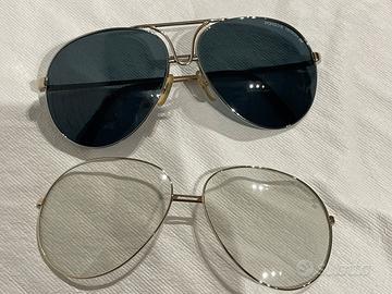 Modello iconico Porsche Design, struttura leggera in metallo, design aviatore, produzione vintage.