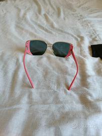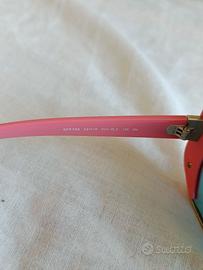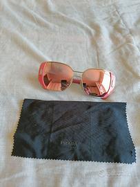Occhiali Prada originali modello SPR 59S. Montatura in metallo dorato con dettagli in acetato rosa corallo. Lenti specchiate. Inclusa custodia rigida originale e panno pulizia. Misure: 54-16-135. Eleganti e rari da trovare in questa colorazione! #Prada #PradaEyewear #LuxurySunglasses #VintagePrada #OcchialiDaSole #PinkSunglasses