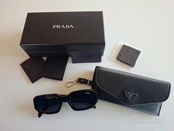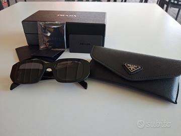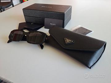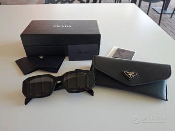 Eleganti occhiali da sole Prada con custodia originale e certificati, perfetti per un tocco di classe in ogni occasione. Design moderno e qualità superiore, ideali sia per occasioni casual che formali. Perfetti per chi cerca un accessorio di lusso e stile.