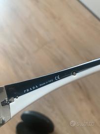 Occhiali da sole Prada vintage ( anni 2000) con lenti sfumate grigie ed aste laterali bianche e nere con propria custodia originale