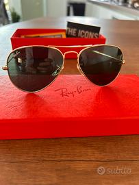 Occhiali da sole Ray-Ban Aviator originali, modello intramontabile dal design elegante e maschile. Struttura in metallo di alta qualità, leggeri e confortevoli, perfetti per ogni occasione.