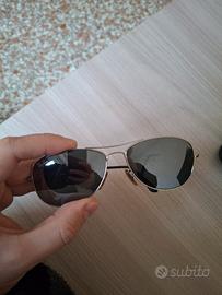 Occhiali da sole Ray-Ban Aviator, usati, con piccoli segni di usura ma perfettamente utilizzabili. Montatura piccola, adatta a ragazzi o chi preferisce una misura ridotta (distanza tra i perni delle stanghette: circa 12,5 cm). Inclusa custodia Ray-Ban.