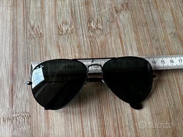 Occhiali da sole Ray-Ban modello Aviator RB3025 L2823 58014 3N rilevati dalle stanghette.