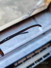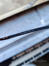 Occhiali da sole in metallo della linea Tech con aste in fibra di carbonio. Lente marrone sfumato. Dimensioni 56-14-140 mm. Leggera usura della vernice :parte superiore della montatura.