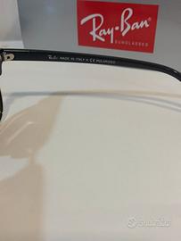 Iconici occhiali da sole Ray-Ban Clubmaster. - Montatura in acetato nero. - Dettagli in metallo color oro. - Lenti grigie polarizzate.