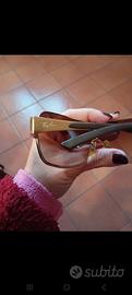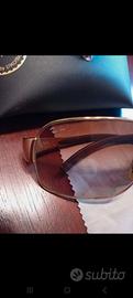Occhiale da sole Rayban a mascherina. Montatura dorata e lente marrone. Originali e con custodia nuova. Gli occhiali sono stati indossati e presentano segnetti sulle lenti che ho cercato di evidenziare nelle ultime due foto. Sono ancora bellissimi e utilizzabili, li vendo perchého bisogno di lenti graduate. Prezzo non trattabile. Disponibile per consegna a mano in zona Torvaianica, Ardea, Pomezia e Aprilia.