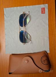 Occhiali da sole come nuovi, nessun graffio o segno di usura. Indossati al massimo 3 o 4 volte. Lenti blu, occhiale dorato. Con custodia e pezza originale.