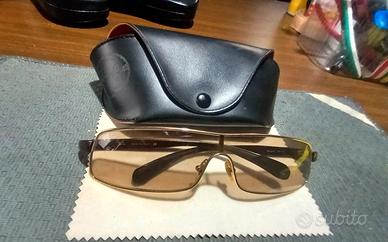 Occhiali rayban RB3243 001/13, distanza da cerniera a cerniera cm 15,00, montatura acciaio dorato e lenti marrone, usati con qualche piccolissimo e impermeabile segno sulle lenti ma nel complesso in ottime condizioni. Le foto dimostrano quanto descritto e fanno parte integrante della vendita che è comprensiva di custodia originale anch'essa con segni d'uso.