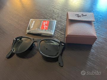 Vendo Occhiali da sole Rayban Wayfarer Folding neri. Mai indossati, condizioni perfette, come nuovi. Completi di custodia in pelle e panno ancora imbustato.