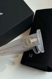 Occhiali da sole rettangolari CHANEL con montatura in acetato unisex grigi