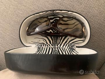 Occhiali da sole marroni con rifiniture oro e grandi, Roberto Cavalli. Non presentano un graffio e sono comprensivi di custodia originale.