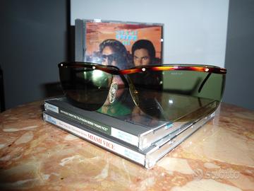 I cd fanno parte della colonna sonora della famosa saga di Miami Vice in cui Don Johnson,con molta classe e fascino,indossa occhiali simili(certo Don e' inimitabile ma chi ti vieta di fantasticare con pochi euro?).