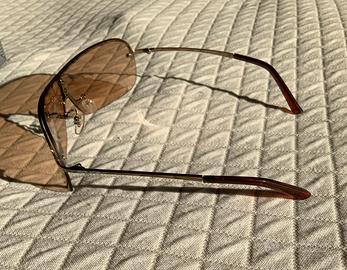 Occhiali da sole Salice con montatura color oro e lenti marroni. Nuovi, mai usati, ancora nella loro confezione.