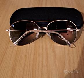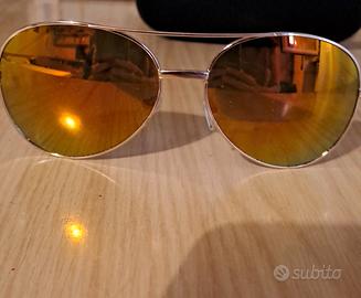 Vendo occhiali da sole specchiati con lenti a forma di goccia e riflessi arancione. Compresi di custodia. Vanno bene sia per donna che per uomo.