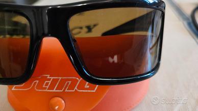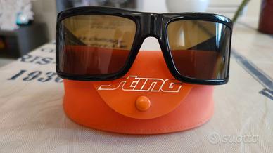 Occhiali da sole Sting unisex originali in custodia originale, montatura nera e lenti più chiare sul dorato. Poco usati e in buone condizioni, con normali piccoli segni di usura del tempo e qualche imperfezione nelle lenti. €10