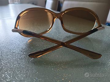 Gli occhiali in foto sono occhiali da sole TOM FORD nel colore bronzo con lenti sfumate marroni.