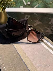 Vendo un bellissimo occhiale Tom Ford, usato pochissimo color tartaruga con lente sfumata, marrone modello over squadrato, con custodia in velluto modello attuale e recente