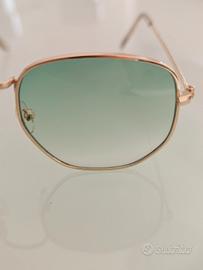 Vendo per inutilizzo, occhiali da sole montatura color oro e lenti sfumate verdi. Gli occhiali sono stati utilizzati poche volte.
