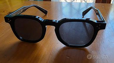 4 Occhiali da sole unisex. Nuovi senza cartellino. Mai indossati. 1. Montatura bicolore nera e maculata marrone con lenti grige. 2. Montatura verde con lenti grige. 3. Montatura verde con lenti blu. 4. Montatura nera con lenti nere. No custodie.