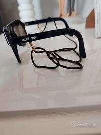 Vintage Eyewear Cébé. Colore blu navy. Modello raro con logo frontale. Completi di laccio. Condizioni eccellenti. Ideali per collezionismo o uso quotidiano.