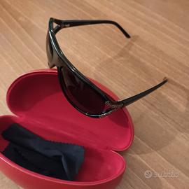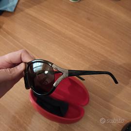 Occhiali da sole marca Valentino originali con inserto di cristalli laterali. Ottimo stato . Montatura nera in acetato con lente grigia scura. Custodia rossa originale