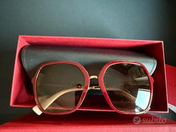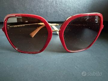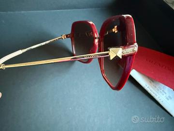 Occhiali da sole Valentino originali modello VA4070775139 dal design squadrato in elegante rosso amaranto. Aste dorate con scritta Valentino e iconica borchia rockstud, rifinite in rosa cipria.